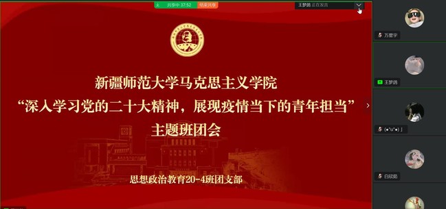 全校各班级团支部开展“深入学习党的二十大精神,展现疫情当下的青年担当”主题班团会