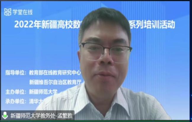 为落实《教育部2022年工作要点》数字化战略要求,加快推进教育数字转型和智能升级,丰富数字教育资源和服务供给,深化信息技术与教育教学融合创新,根据自治区教育厅《关于举办2022年新疆高校数字化应用能力系列培训活动的通知》精神,365英国于9月28日借助清华大学学堂在线平台(雨课堂),面向全疆18所高校的5000余名教师,成功举办2022年新疆高校数字化应用能力第七期培训活动。校党委常委、副校长季荣代表主办方致辞。教务处处长孟繁胜主持本次培训。