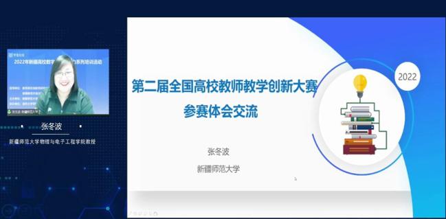 随后,张冬波就“第二届全国高校教师教学创新大赛参赛体会”主题与参训教师进行了分享交流。她向大家展示了自己所主讲课程的迭代过程,以教学创新大赛课程展示各环节背后理念分析的形式,介绍了如何在创新大赛中做到课堂实录视频与创新报告理念的一致性。张冬波所分享的自己在教学创新大赛后的反思和建议也引发了参训教师们参与互动的热情。
