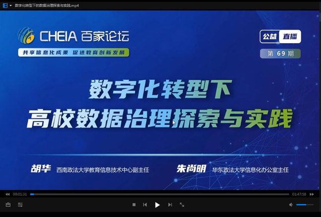 9月2日,中心组织了主题为《数字化转型下高校数据治理探索与实践》培训讲座,大家聆听了西南政法大学教育信息技术中心副主任胡华、华东政法大学信息化办公室主任朱尚明两位专家做的《数据治理的新技术、新方法探索与实践》《打造数据治理新基座,实现数字化转型新愿景》的精彩分享。通过专家分享数据治理的实践感受与理论思考,与目前学校数据治理工作开展找到了共鸣点,为学校数据治理工作拓展了思路,并为下一步工作推进指明了方向。