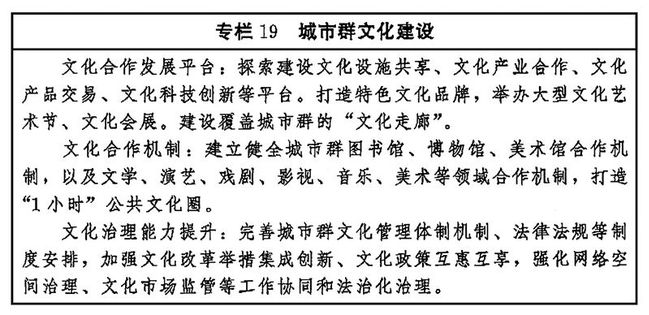 加强区域文化协同创新,健全合作互助、扶持补偿机制,推动东部地区以创新引领文化发展,加大力度支持中西部地区以及东北等老工业基地文化发展,扶持革命老区、民族地区、边疆地区文化发展,形成相互促进、优势互补、融合互动的区域文化发展格局。围绕京津冀协同发展、长江经济带发展、粤港澳大湾区建设、长三角一体化发展、黄河流域生态保护和高质量发展等区域重大战略,健全推进区域内文化协同发展机制,提升公共文化设施互联互通水平,加强区域文化产业带建设,实现区域文化建设水平整体提高。促进形成文化产业发展新格局,创新城市群文化一体化发展体制机制,共建高水平合作平台,加强公共文化服务便利共享。完善以城带乡、城乡融合的文化发展体制机制,发挥城市带动辐射作用,加快城乡间文化要素双向流动,形成以点带面、特色鲜明、优势互补、均衡配置的城乡文化发展新格局。