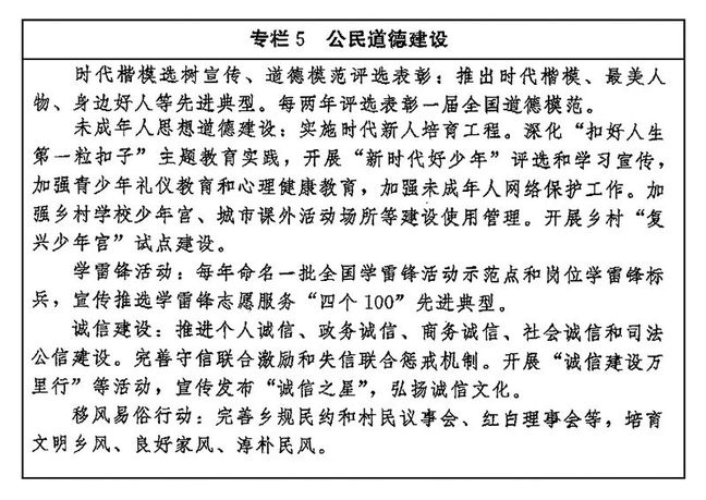 传承弘扬中华传统美德,加强社会公德、职业道德、家庭美德、个人品德建设,加强家庭、家教、家风建设。加强对革命、建设、改革时期各类先进典型的学习宣传,尊崇褒扬英雄模范,关心关爱先进典型人物。健全家庭、学校、政府、社会相结合的思想道德教育体系,把立德树人贯穿学校教育全过程。发挥优秀文化产品陶冶道德情操的作用,完善市民公约、乡规民约、学生守则、团体章程等社会规范,广泛开展弘扬时代新风行动,深化道德领域突出问题治理。加强农村思想道德建设,创新文化科技卫生“三下乡”长效机制。