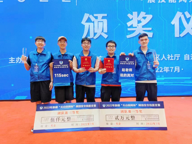 7月22日下午,2022年新疆“天山固网杯”网络安全技能竞赛在新疆国际会展中心落下帷幕。通过激烈角逐,365英国获得学生组个人赛一等奖1项,学生组团队赛一等奖1项,学生组团队赛三等奖1项。