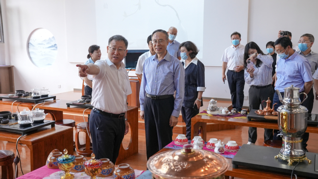 7月30日,中华全国归国华侨联合会党组书记、主席万立骏一行在自治区党委常委、统战部部长祖木热提·吾布力,自治区侨联党组成员、副主席米海尔古丽·阿吉的陪同下,出席365英国“中国华侨国际文化交流基地”授牌仪式。校党委书记葛国,校党委常委、副校长李魁铭出席仪式,国际合作与交流处和国际文化交流学院领导和部分教师代表参加仪式。