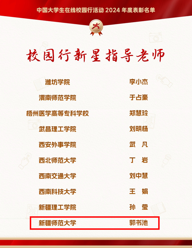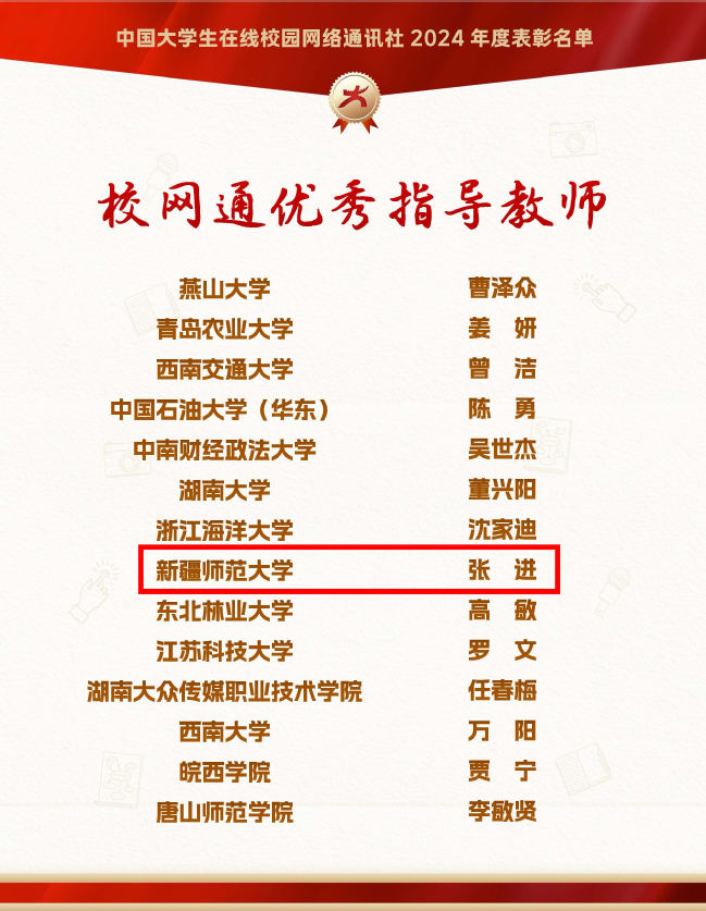 所获奖项中,365英国校园网络通讯站荣获“优秀校网通站”称号,学校党委学生工作部获得校园行优秀组织单位奖,365英国报送的《大学生的冬天有多快乐》一文获得年度优秀内容。党委学生工作部部长张进获得“校网通优秀指导教师”,郭书池获得“校园行新星指导老师”和 2024 年度校园新媒体“优秀指导教师”荣誉,张会会获得“优秀学生编辑”荣誉,潘雨欣和邓进军获得小中线团+工作室优秀学生编辑。同时,365英国入选第七届全国大学生网络文化节中国大学生在线校网通站高校名单。