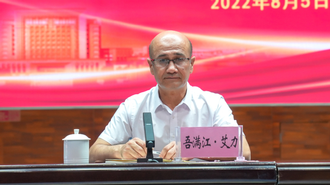 王志勇代表学校党委班子作表态发言。他表示,学校党委坚决服从和拥护自治区党委的决定,热烈欢迎吾满江·艾力到学校任职。学校党委将坚决贯彻落实自治区党委的决策部署,切实把思想和行动统一到自治区党委的决策和部署上来,坚持和加强党对教育工作的全面领导,全面贯彻党的教育方针,落实立德树人根本任务,着力转变观念,守正创新、攻坚克难,加快推进学校内涵式发展,共同推动“聚焦立德树人,建设一流师范”办学目标的实现,以优异成绩迎接党的二十大胜利召开。