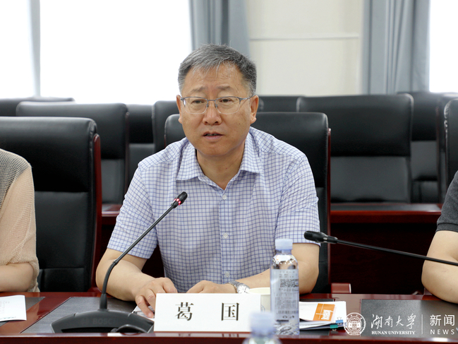 6月30日至7月1日,葛国一行来到湖南大学考察并与湖南大学党委书记邓卫,党委常委、副校长汪卫斌,党委常委、组织部部长孙炜及教务处、研究生院、发展规划办、科学技术研究院、社会科学处、人力资源处、经济与贸易学院、金融与统计学院、化学化工学院等相关负责人进行了座谈交流。