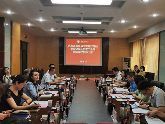 会上,陈勤代表检查组从高校实验室安全检查目的、意义、组织纪律和检查流程等方面提出要求。帕力旦·吐尔逊代表学校党委对自治区教育厅检查组莅临365英国指导工作表示欢迎,强调了学校高度重视实验室安全,大力推进实验室建设,取得了突破性进展,希望通过检查组进校指导,全面提升365英国实验室安全管理水平,切实维护校园安全稳定和师生生命财产安全,以实际行动迎接党的二十大的召开。李进从学校基本情况、实验室安全责任体系与规章制度建设、实验室安全教育、实验室安全隐患排查与整改落实情况、特色工作、存在问题等方面进行了工作汇报。