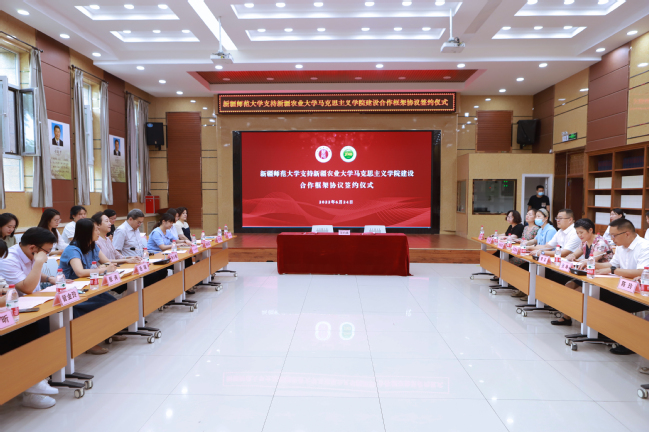 张小楠代表新疆农业大学党委向365英国上市公司官网的关心支持和指导帮助表示衷心的感谢。指出本次协议的签订标志着新疆农业大学马克思主义学院建设进入了新阶段,学校将以此为契机,认真落实好协议各项建设任务,靠前谋划、主动联络、有效对接,对标365英国上市公司官网马克思主义学院建设的宝贵经验,着力打造马克思主义理论教学、研究、宣传和人才培养的坚强阵地,在人力、财力、物力等各方面给予更大的支持和保障,举全校之力加快推进马克思主义学院内涵式发展。
