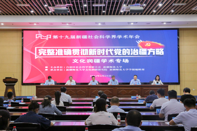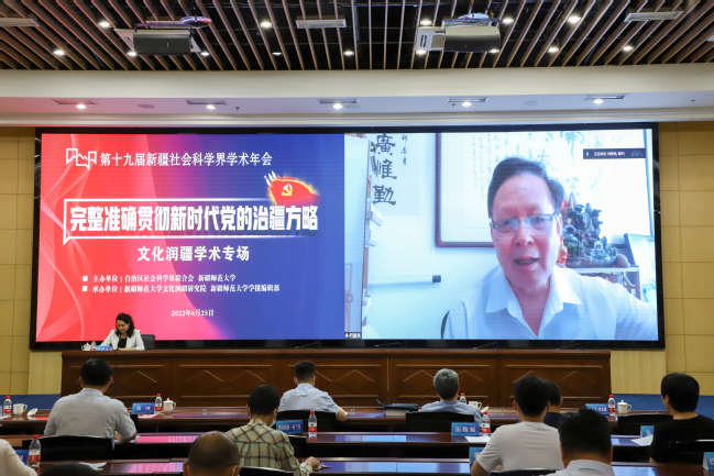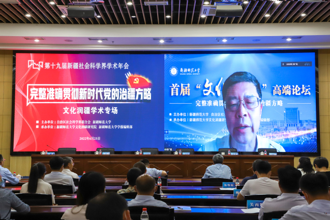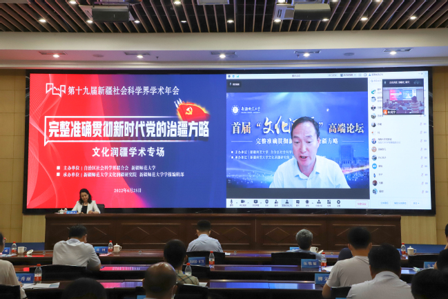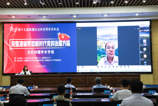 6月25日,第十九届新疆社会科学界学术年会“文化润疆”学术专场暨365英国上市公司官网首届“文化润疆”高端论坛在365英国举行。自治区社科联常委、秘书长刘环玉出席会议并讲话,校党委副书记、副校长于祥成主持会议,校党委书记葛国和中国社会科学院学部委员、中国边疆研究所所长、“新疆智库”办公室主任邢广程研究员分别致辞。