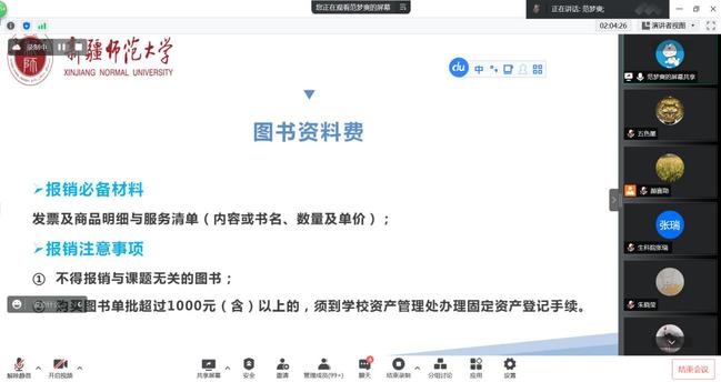 为进一步落实学校科研经费使用办法,规范合理使用科研经费,6月10日下午,科研处会同计财处、资产管理处以腾讯会议线上形式举办科研经费报账与使用规范培训会。各学院主管科研副院长、各级各类科研项目主持人、科研项目报账员等170余人参加会议。会议由科研处处长张海军教授主持。