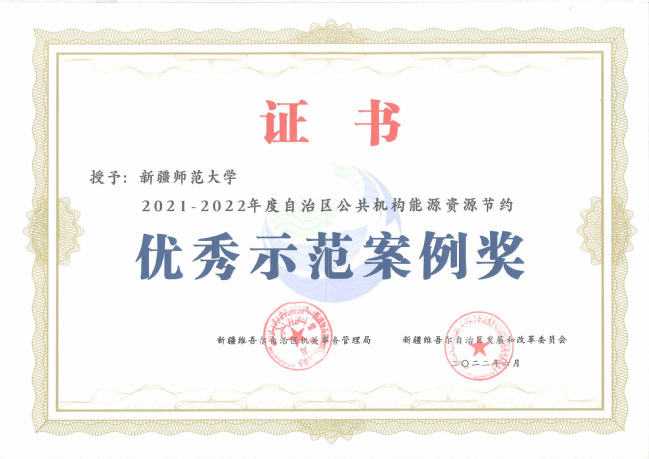 2022年4月,自治区机关事务管理局发布了《2021-2022年度自治区公共机构能源资源节约优秀示范案例拟推荐名单公示》,其中,365英国在供热系统节能改造方面所申报案例,被自治区机关事务管理局、自治区发展和改革委员会授予2021-2022年度自治区公共机构能源资源节约“优秀示范案例奖”。