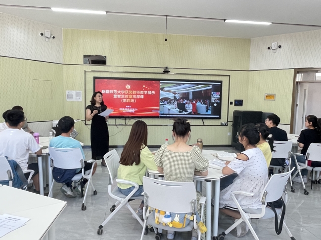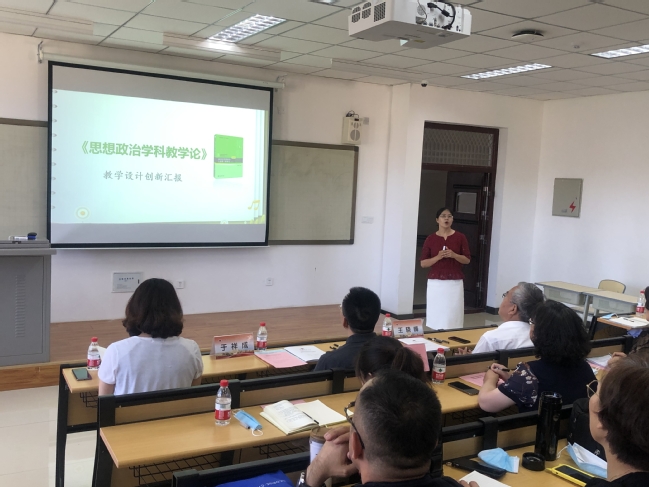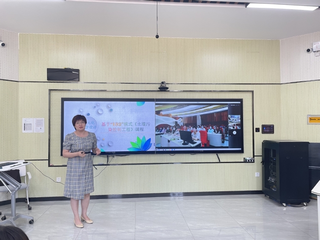 两场观摩课分别由第二届高校教师教学创新大赛新疆赛区一等奖获得者刘晓燕副教授、三等奖获得者吉恒莹老师主讲。其中,刘晓燕对《思想政治学科教学论》课程的教学创新设计进行汇报,以“准思政课教师应具备哪些素养”为主题进行教学展示;吉恒莹对《土壤污染控制工程》课程“132”,即“一中心、三学、两性”的教学创新模式进行了解读,以土壤酸碱修复案例为知识点展开常态课教学,学生们认真听讲,积极互动。