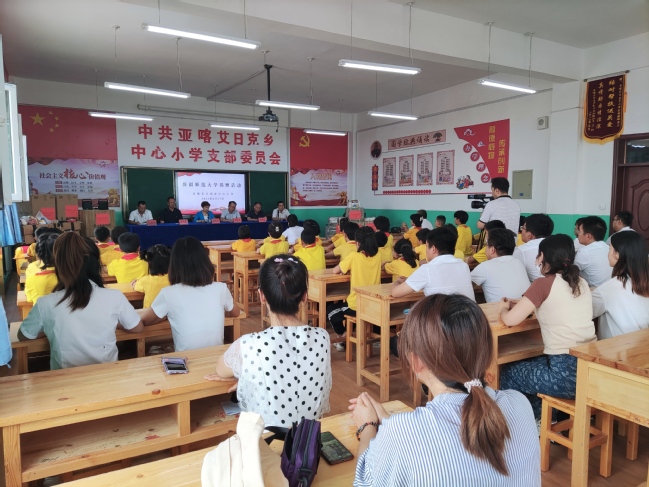 孙秀玲在讲话中说,自20213月起,学校开启助力亚喀艾日克乡教育教学工作,学校党委充分依托学校教育优势,在帮扶内容、帮扶机制上做好顶层设计,把对亚乡小学的帮扶作为“访惠聚”工作的重要任务,通过派驻经验丰富的管理干部、骨干教师和实习支教学生,充实优化教师队伍,提升办学水平;通过开展“双师课堂”,创新教学模式,安装专网并购置平板电脑,做好教学保障工作;开展假期“小课堂”、组织夏令营活动等,提高亚乡小学教育教学质量;制定《中华优秀传统文化进校园实施方案》,深入推进文化润疆工作落实落小,铸牢中华民族共同体意识,已初步形成“日常教学+周末小课堂+假期小课堂+夏令营”的教育帮扶模式。为改变亚乡小学办学条件和学习条件,学校用全体党员捐款形成的“初心基金”连续两年向亚乡小学捐赠包括图书、教学设备等,充分体现了新疆师大党委和全体教职工们对亚乡孩子们的关心关爱,也是师大人教育情怀和社会责任的具体体现。