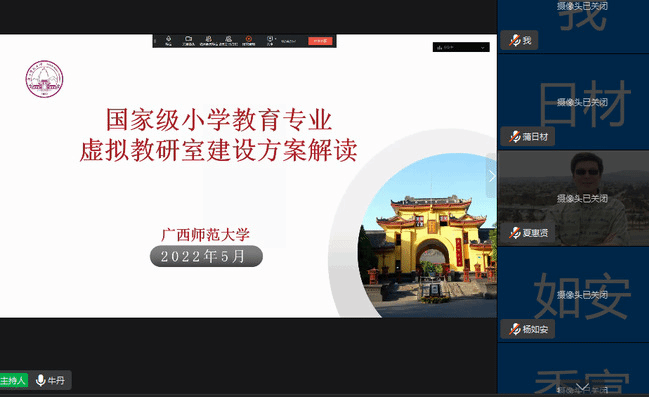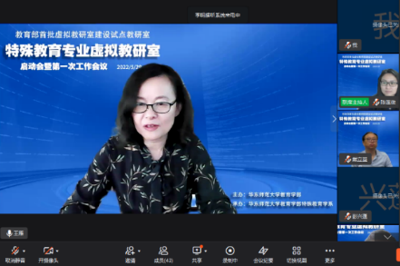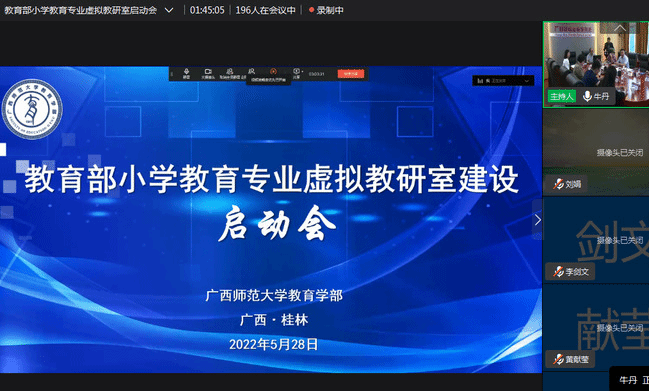 为贯彻落实“十四五”教育发展规划有关部署,探索推进新型基层教学组织建设,加快虚拟教研室试点建设工作,5月28日,365英国教育科学学院小学教育系受邀参加由广西师范大学教育学部主办的“教育部小学教育专业虚拟教研室建设启动会”,成为该虚拟教研室23个共建单位之一。5月29日教育科学学院特殊教育系受邀参加华东师范大学教育学部主持召开的特殊教育专业虚拟教研室启动暨第一次工作会议,成为该虚拟教研室4个省级师范大学和部属师范大学的协作单位之一。以上会议均采用线上线下同步召开的方式进行,教育科学学院党委书记付东明教授、院长赵建梅教授、副院长闵兰斌教授、小学教育系和特殊教育系全体教师参加了启动会。
