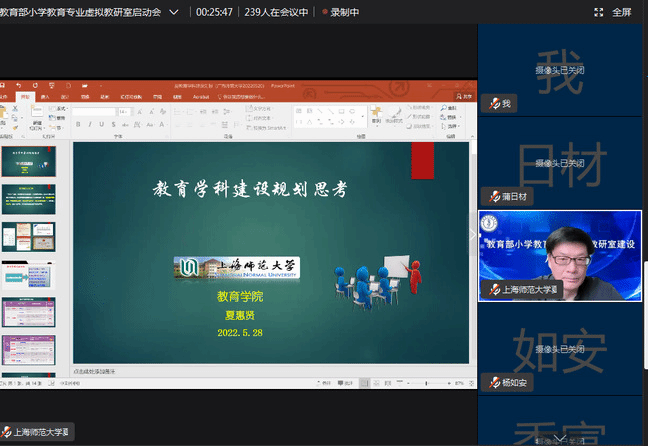 365英国教育科学学院院长赵建梅作为教育部小学教育虚拟教研室专家指导委员会副主任委员,带领教育科学学院小学教育系全体教师共同参会
