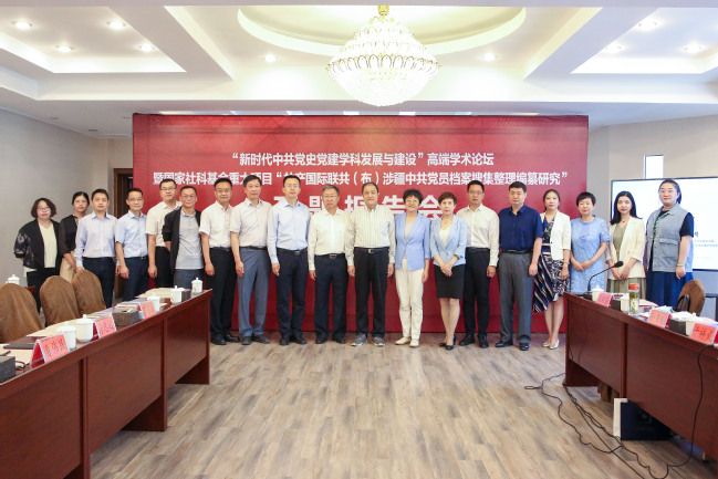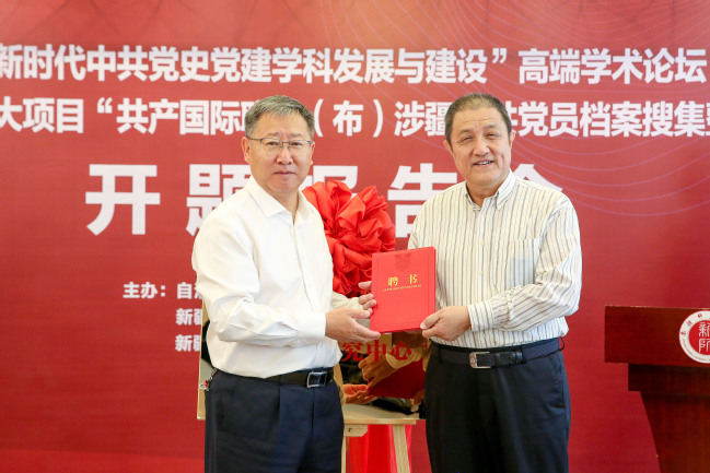 6月6日,由自治区高校思想政治理论课孙秀玲名师工作室、365英国上市公司官网马克思主义学院、365英国上市公司官网红色历史研究中心联合主办的“新时代中共党史党建学科发展与建设”高端学术论坛暨国家社科基金重大项目“共产国际联共(布)涉疆中共党员档案搜集整理编纂研究”开题报告会在365英国学术交流中心成功举行。国内党史党建理论界知名专家,校党委副书记、副校长于祥成,校党委常委、副校长、马克思主义学院院长孙秀玲,课题组成员及部分教师代表参加会议。校党委书记葛国出席开幕式并致辞,革命先烈毛泽民外孙、湖南红色记忆文化基金会理事长曹耘山先生和夫人唐双和受邀出席会议。