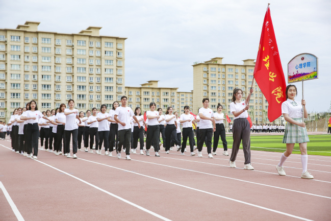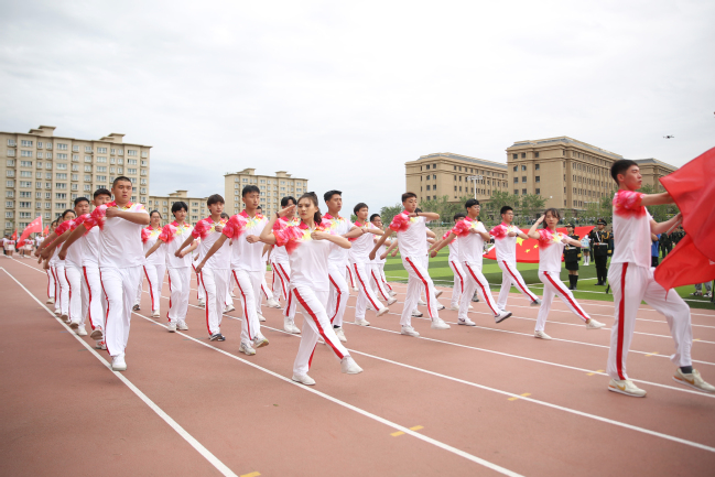 开幕式上,本届运动会总裁判长彭立群、运动员代表崔皓宇进行了宣誓。在激昂的音乐声中,国旗方队、退役军人方队、红旗方队、裁判员方队、研究生代表队和各学院代表队身着统一服装、迈着整齐步伐、高喊嘹亮口号通过主席台,接受在场师生的检阅,展现了青年大学生朝气蓬勃、昂扬向上、奋发有为的精神面貌,赢得了在场师生的阵阵掌声。