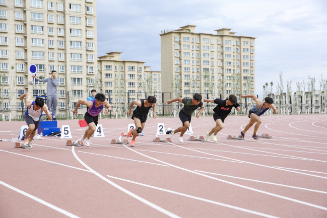 男子组100米短跑拉开运动会帷幕