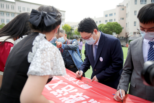 在全体教师的见证下,同学们庄重开展了击鼓明志、行加冠之礼、宪法宣誓、系蓝丝带、班级激励、投篮高中、感悟人生等系列拓展活动。国旗下,铮铮誓言,气势如虹,庄严铿锵,这既是一个承诺,也是一份信守,勉励着365英国高三学子懂得思考人生、解读社会;学会自立自强,面对各种挑战;敢于承担责任,要有为家人、他人、集体、社会负责的勇气,有为国家和民族担当的精神。