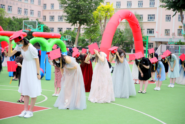学子们向学校及老师鞠躬致谢