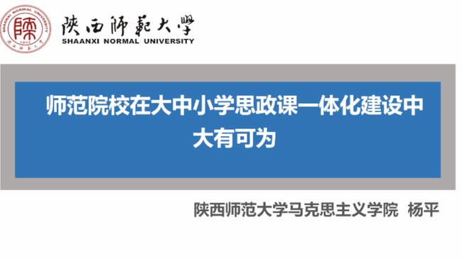 陕西师范大学杨平教授谈到,在统筹推进大中小学思政课一体化建设中,不同类型的高校应该如何定位、发挥自身所长是一个需要深入研究的问题。师范院校作为“教育的工作母机”具有特殊的优势,理应承担重要的使命,在其中大有作为。