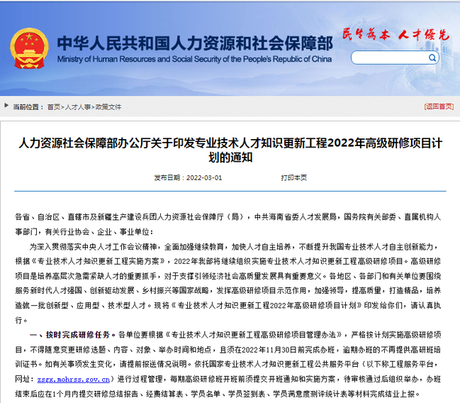 专业技术人才知识更新工程高级研修项目是由国家人社部全额资助的一个具有公益性、示范性、引导性的精品研修项目。高级研修项目聚焦“高精尖缺”人才,以创新创业能力建设为核心,以服务创新驱动发展为根本,旨在培养造就高素质专业技术人才队伍,提升专业技术人才科技水平和创新能力,在推动我国经济社会发展和科技创新方面具有重要作用和意义。
