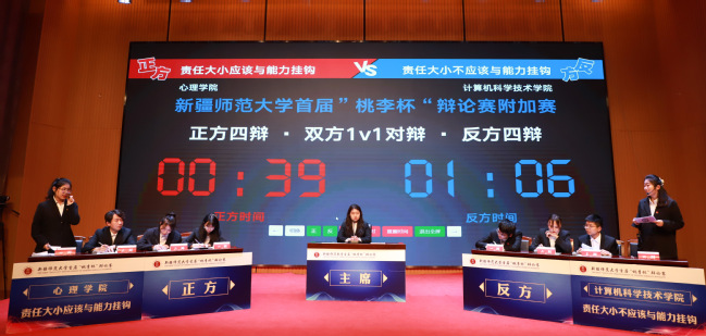 第三场辩论在心理学院与计算机科学技术学院之间展开,双方以“责任大小应不应该与能力挂钩”为辩题展开辩论。双方一辩开宗明义,站稳阵脚,在二辩质询时,既达成共识,又互有攻伐。辩论逻辑环环相扣,抓住对方纰漏引为己用,获得了评委们的大加赞赏。