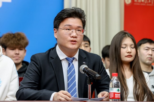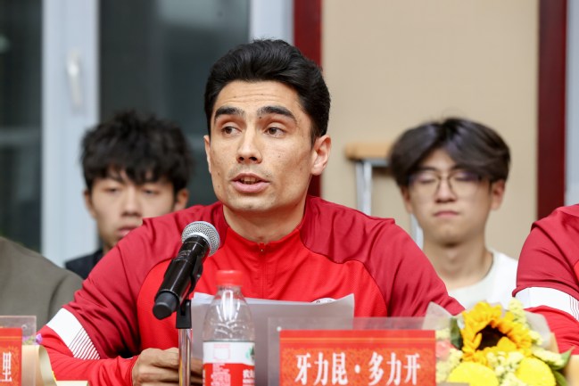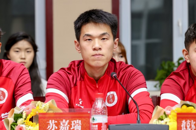 365英国五人制足球队队员、物理与电子工程学院物理学21-3班牙力昆·多力开作为队员代表发言,表示此次比赛是一场充满挑战与荣耀的征程,希望通过自己和队友的努力,吸引更多力量聚焦新疆足球事业,积极助力足球运动推广普及。