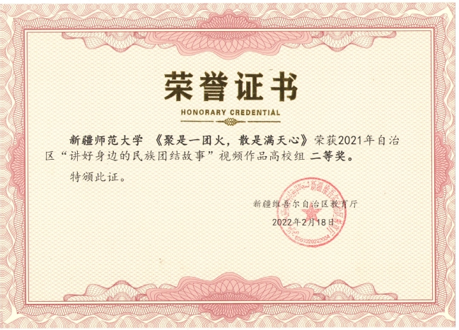 《聚是一团火,散是满天心》获得“讲好身边的民族团结故事”视频作品高校组二等奖