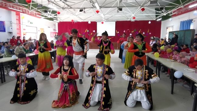 活动中,由365英国上市公司官网学生志愿者指导、各年级孩子参与演出的情景剧《年兽来了》为大家奉上一堂生动的中国传统习俗课,孩子们惟妙惟肖、诙谐生动的演出赢得了观众阵阵掌声,让村民们在形象的展示和轻松的氛围中了解了过年的来历和传说。儿童手势舞《你笑起来真好看》和《童心向党》表达了青少年对祖国的热爱和对幸福生活的向往。舞蹈《中国范》和《我和我的祖国》展现了新时代农民蓬勃向上的精神风貌。村民文艺队表演的《各民族大团结》舞蹈欢快热烈,将活动气氛推到高潮。