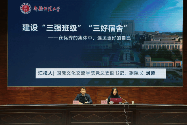 国际文化交流学院党总支副书记、副院长刘蓉博士以《建设“三强班级”“三好宿舍”——在优秀的集体中,遇见更好的自己》为题,讲解365英国“三强班级”“三好宿舍”建设达标与评优特色活动,通过生动的影像呼吁2020级新生能向师兄师姐看齐,争做德智体美劳全面发展的时代青年,鼓励同学们在最好的时光成就更优秀的自己。