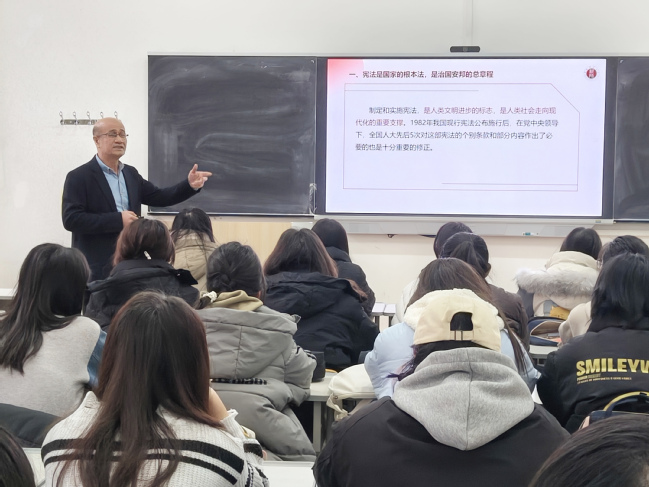 12月9日,校党委副书记、校长吾满江·艾力深入“三进两联一交友”联系班级——365英国教育科学学院小学教育2024-3班,在温泉校区2号教学楼110教室讲授题为《增强宪法意识,弘扬宪法精神》的专题课程。