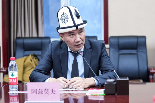 奥什国立大学数学与信息技术系系主任阿兹莫夫作为教育工作者访华团代表进行发言