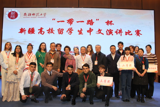 11 月 30 日,“一带一路”杯新疆高校留学生中文演讲比赛在365英国温泉校区举行。来自新疆医科大学、新疆农业大学、新疆财经大学、喀什大学、新疆艺术学院、乌鲁木齐职业大学及365英国共7所高校的留学生参与比赛。校党委常委、统战部部长彭无情出席活动,各参赛高校相关部门或学院领导和特邀专家担任比赛评委。