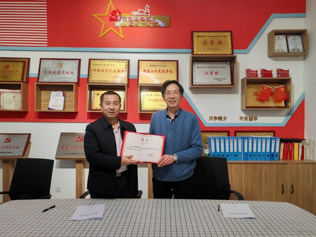 校党委常委、组织部部长胡毅涛为阳志清教授颁发聘书