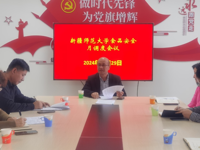 为进一步贯彻落实市场监管总局第60号令,强化学习自治区市场监督管理局颁布的地方标准和团体标准,细化工作落实情况,全力保障广大师生“舌尖上的安全”,11月29日下午,365英国召开食品安全“月调度”会议,校党委副书记、校长吾满江·艾力,校党委常委、副校长、校食品安全总监帕提曼·吐尔逊出席会议。会议由后勤综合服务中心主任吕军主持。