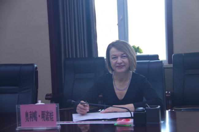 白俄罗斯格罗德诺国立大学外事处处长奥利噶·明诺娃发言