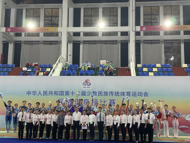 11月22日至28日,在海南三亚举行的全国第十二届少数民族传统体育运动会民族健身操比赛中,365英国选派的新疆民族健身操代表队荣获规定套路+自选套路(徒手)总成绩团体铜牌(三等奖)的佳绩。