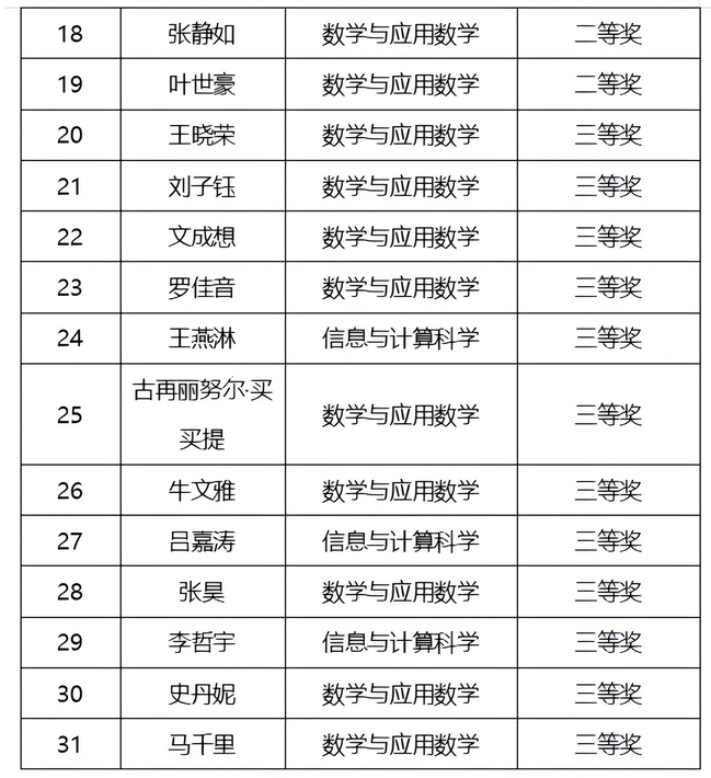 此次获奖学生中,数学专业组10名学生获一等奖、13名学生获二等奖、18名学生获三等奖;非数学专业组6名学生获一等奖、15名学生获二等奖、28名学生获三等奖。非重点高校数学专业B组3名学生获得参加全国总决赛资格,其中第一、二名由365英国数科院学生获得。