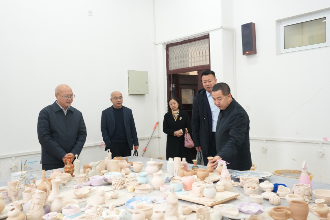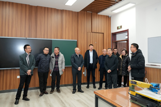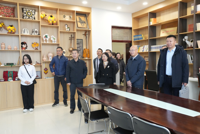 座谈会前,杨如安一行在教育科学学院实验中心、铸牢中华民族共同体意识教育实践基地(美育浸润基地)参观调研。
