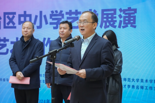 陈希海在致辞中表示,自治区高度重视学校美育工作,坚持把学校美育作为落实立德树人根本任务的重要途径,着力抓改革、优评价、搭平台、强引领,全区涌现出一大批具有时代特征、学校特色、学生特点、教育特质的学校美育实践作品。同时,美育教育在启迪思想、温润心灵、陶冶情操等方面具有独特优势,对社会主义核心价值观的传播至关重要。