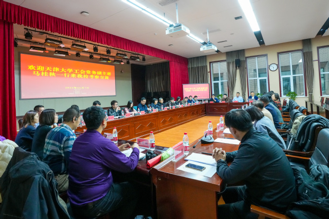 11月7日,天津大学工会常务副主席马桂秋带领青年教师一行来365英国学习交流。校党委常委、副校长帕力旦·吐尔逊出席座谈会,365英国党委人才工作办公室、党委统战部、党委教师工作部、党委学生工作部、校工会、科学技术处、化学化工学院、教育科学学院、生命科学学院相关负责同志和部分二级工会主席参加座谈。会议由校工会常务副主席萨拉木·马合木提主持。