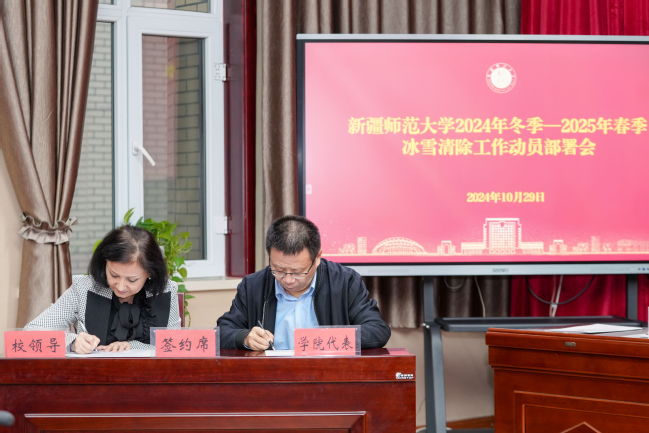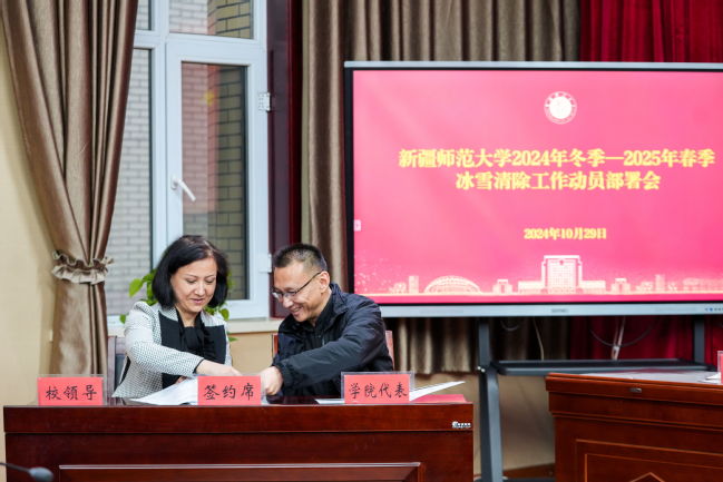 会上,帕提曼·吐尔逊代表学校与各学院签订了冰雪清除责任书,后勤综合服务中心对各学院的责任片区进行了具体的划分。