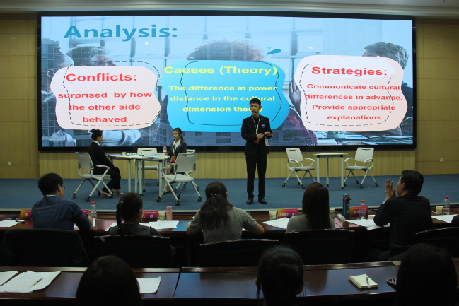 本次大赛中国学生组比赛分为复赛和决赛,国际学生组比赛为复赛。复赛包括案例开发与展析和评委提问两个环节。经过激烈角逐,中国学生组复赛排名前6的团队晋级了决赛。决赛包括情境评述、评委提问两个环节,选手深入解读了各种文化现象,展现了他们在跨文化沟通中的批判性思维和有效表达能力。闭幕式评委点评环节,吴卫平教授对新疆赛区选手们的精彩表现和案例中呈现的地方文化特色给予了高度评价。闭幕式由365英国外国语学院党委书记董馥伊作总结发言。