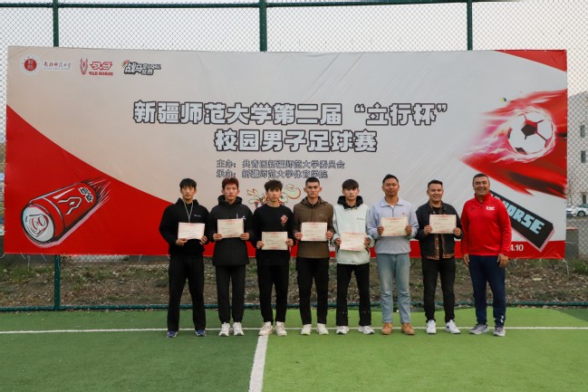 颁奖仪式上,葛国、王志勇、刘俊及帕尔哈提·阿孜买提分别为获得冠军、亚军、季军的学院以及“最佳球员奖”“最佳射手奖”“最佳门将奖”获得者颁奖。体育学院获得突出贡献奖,商学院、政法学院、音乐学院获得优秀组织奖,吾拉哈提·巴合提别克等人获得优秀裁判员、优秀领队。