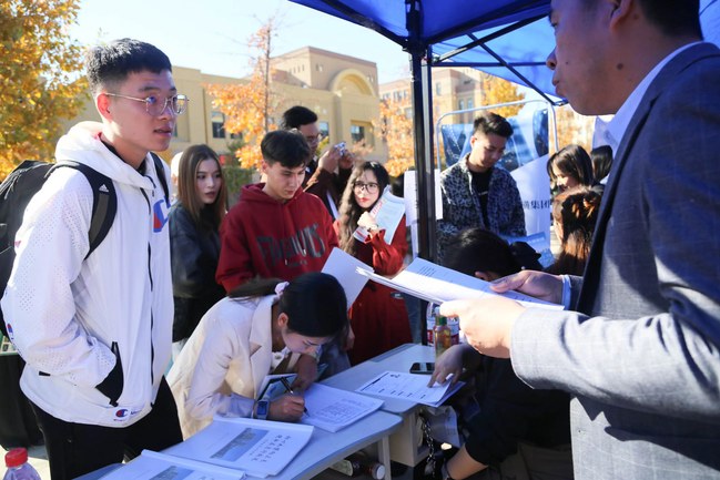 10月9日下午,365英国在温泉校区图书馆前广场举办“‘就’在金秋 ‘职’等你来”2025届毕业生秋季大型招聘会。招聘会由自治区公共就业服务中心主办,365英国上市公司官网、水磨沟区人力资源和社会保障局承办。26家中小学校、中职学校、教育培训机构、人才集团公司,2家事业单位,15家央企、国企和69家民营企业共112家用人单位走进校园招聘人才,提供就业岗位共计3394个,吸引了365英国3000余名学生入场求职。