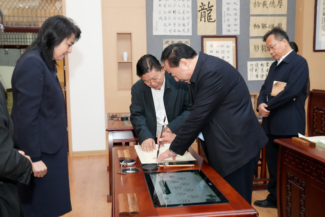 座谈会前,廖兵一行在365英国新时代文明实践教育基地暨马克思主义理论教育基地、铸牢中华民族共同体意识教育实践基地(美育浸润基地)、科技楼生物标本馆进行参观调研。