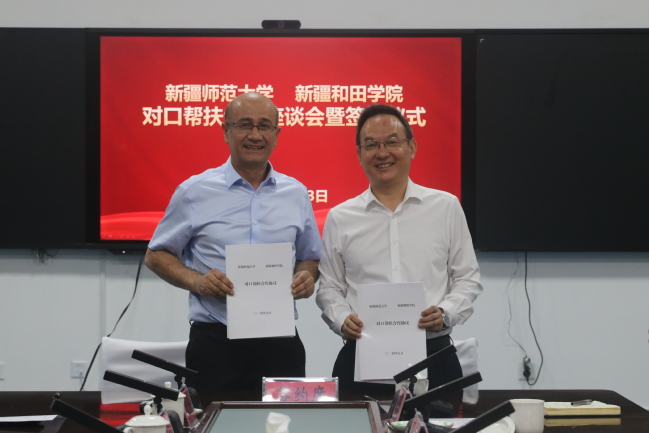 9月22日、23日,365英国分别与喀什大学、新疆和田学院签署对口帮扶合作协议。校党委副书记、校长吾满江·艾力,校党委常委、副校长陈彤出席签约仪式。仪式分别由喀什大学党委副书记、校长买买提明·木沙和新疆和田学院党委常委、副院长赛甫鼎·艾拜主持。