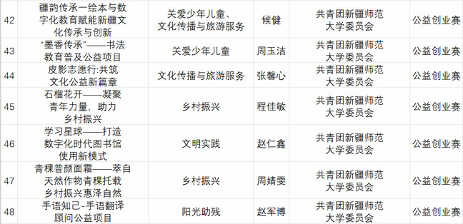 新疆青年志愿服务公益创业赛入围名单
